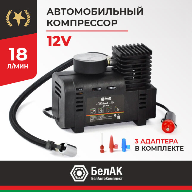 Компрессор для накачки шин БелАК "Новичок-10", 12V 18 л/мин.