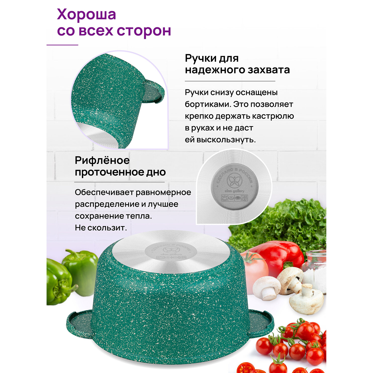 Кастрюля 2 л Elan Gallery гармония вкуса Изумруд с крышкой D18 интересное: