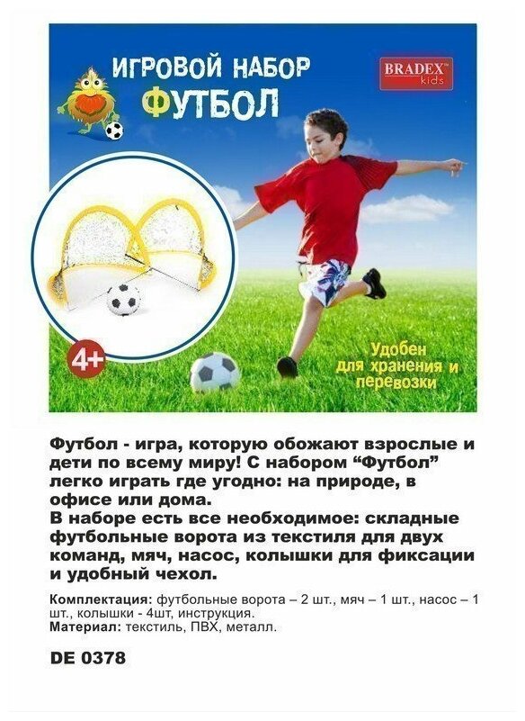 Игровой набор детский для игры в футбол от Bradex, ворота, футбольный мяч, колышки для ворот, насос