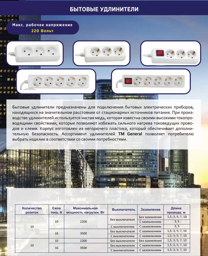 Удлинитель 5-розеток 3м 3х1мм с заземлением General интересное: