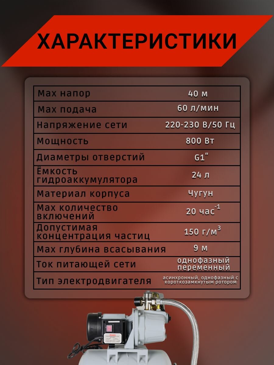 Автономная насосная станция Ресанта АНС-4200Н/50, 1200 Вт, напор – 42 м, 70 л/мин, гидроаккумулятор – 50 л