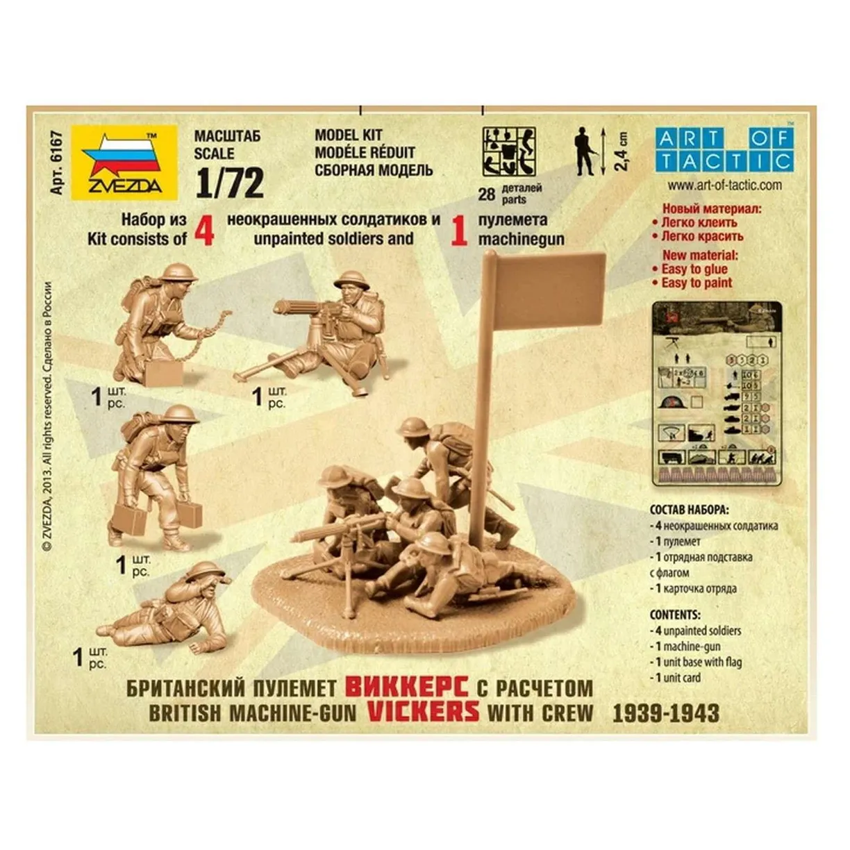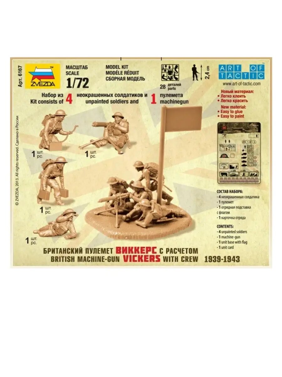 Сборные солдатики ZVEZDA Британский пулемет "Виккерс" с расчетом, 1/72, ZV-6167