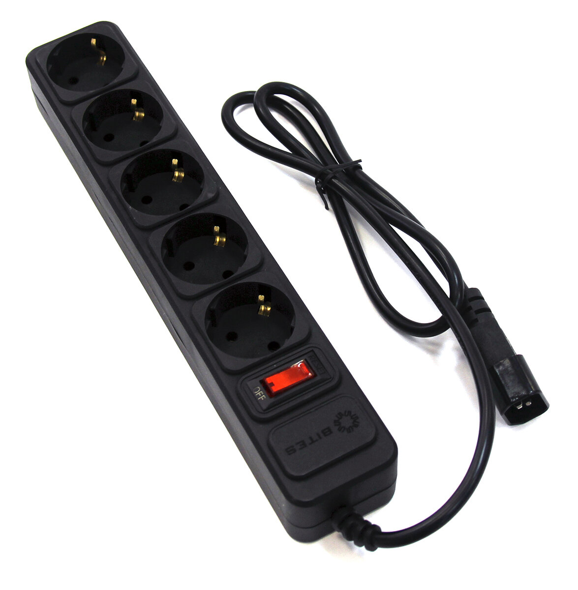 Сетевой удлинитель 5bites SP5B-110U 5S, 5 розеток, 1 м, 10 А, 3х0.75 мм2, с выкл., черный