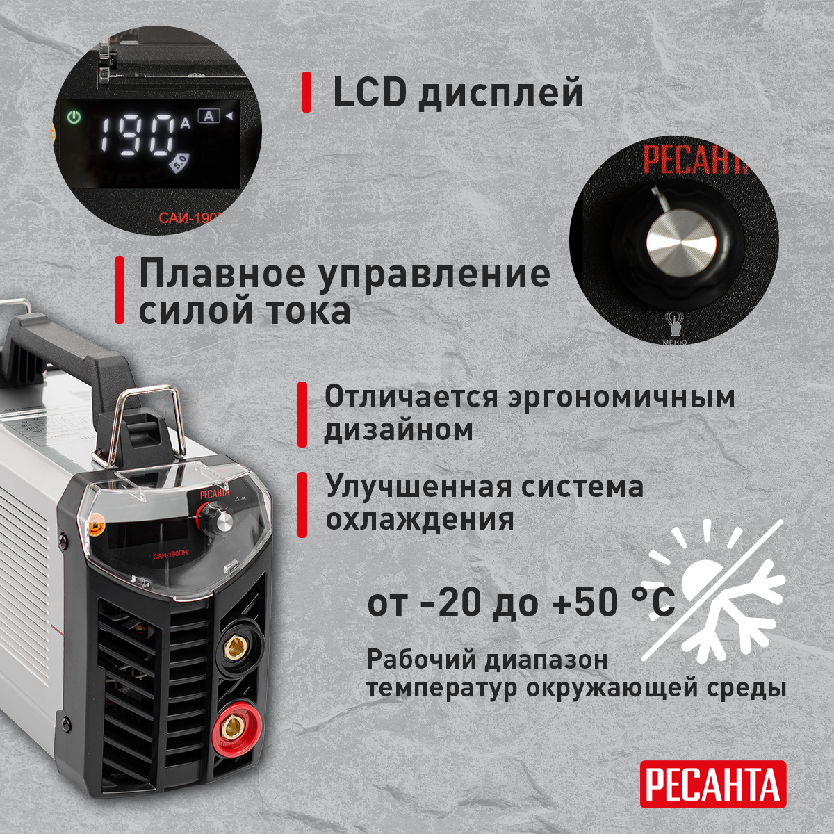 Простая настройка; цифровой дисплей; длинные провода; качество сварки