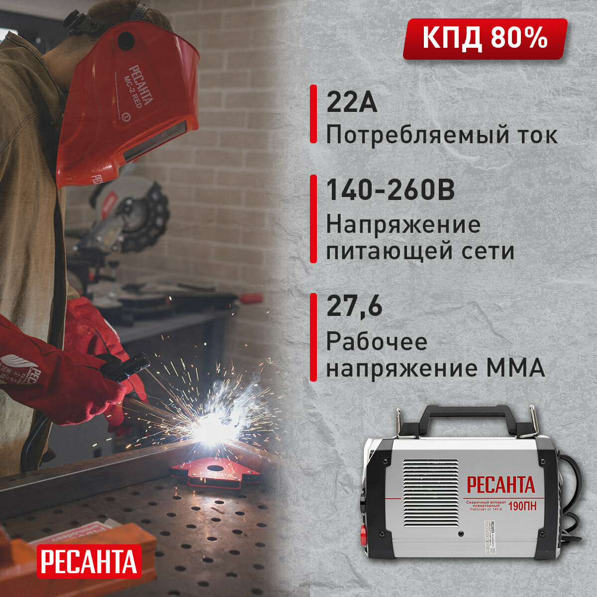 Справляется даже при низком напряжении, плавно стартует, варит неплохо и практически не нагревается