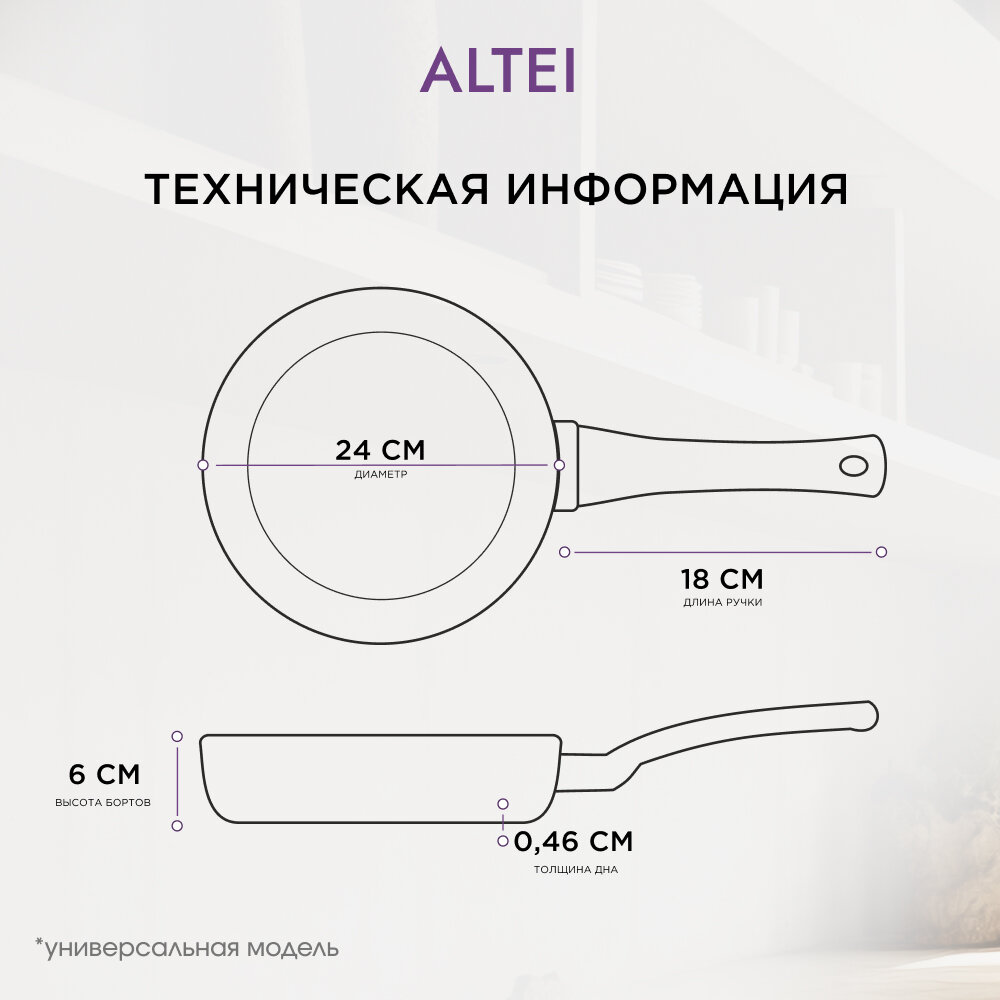 Сковорода антипригарная 24 см со съемной ручкой, Алтей интересное:
