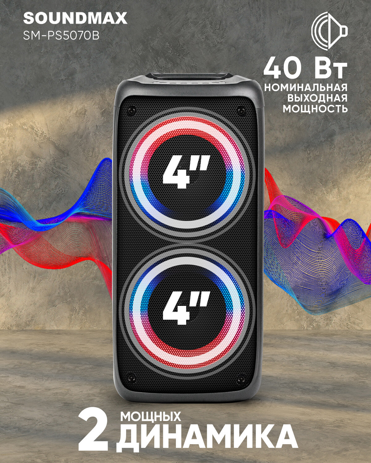 Портативная акустика SOUNDMAX SM-PS5070B 40 Вт 38 см