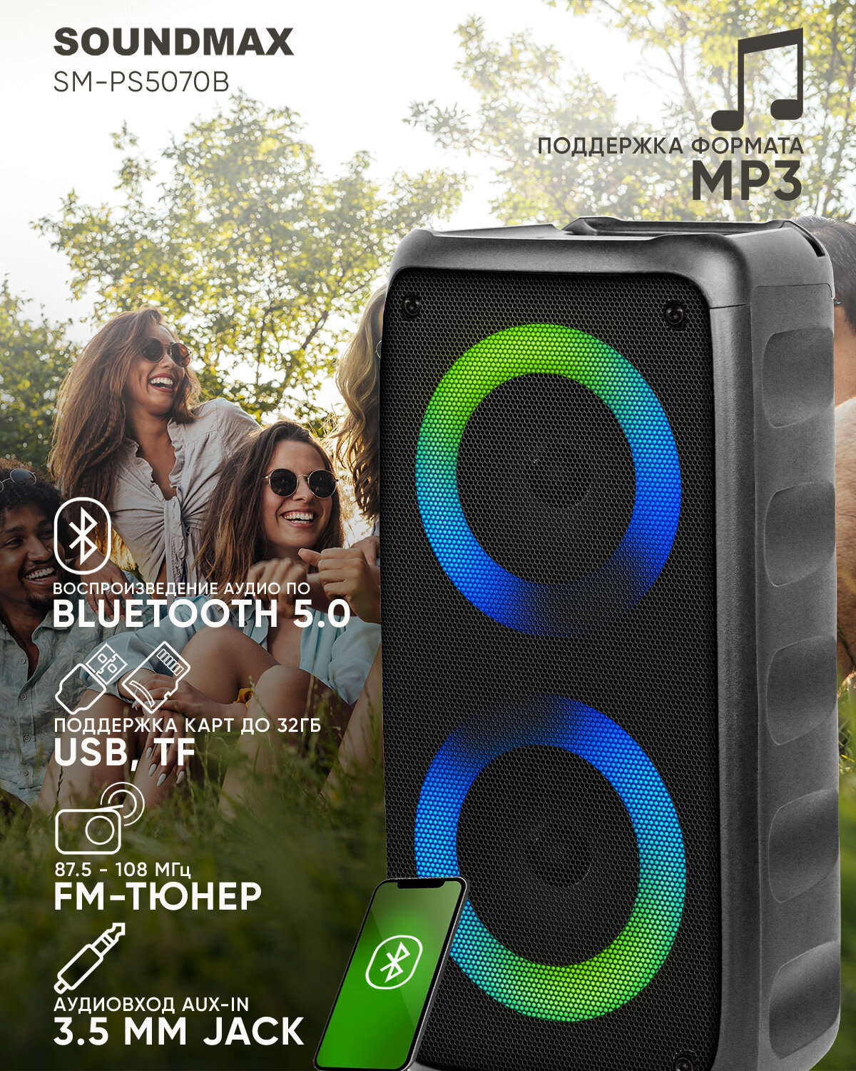 Портативная аудиосистема (колонка) SOUNDMAX SM-PS5070B