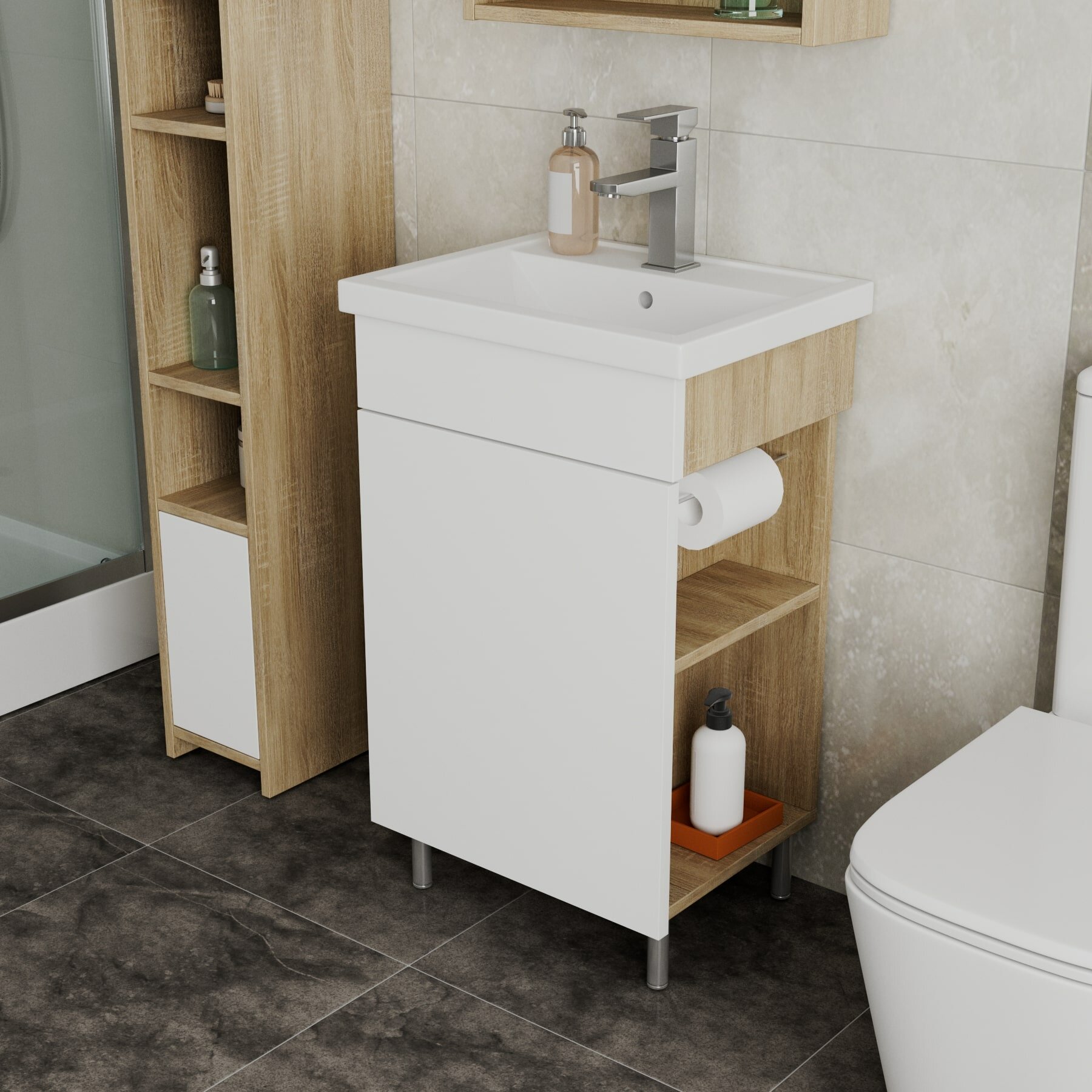 Купить Тумба Алегра 50 белая/дуб сонома под ум-ник Фостер 50