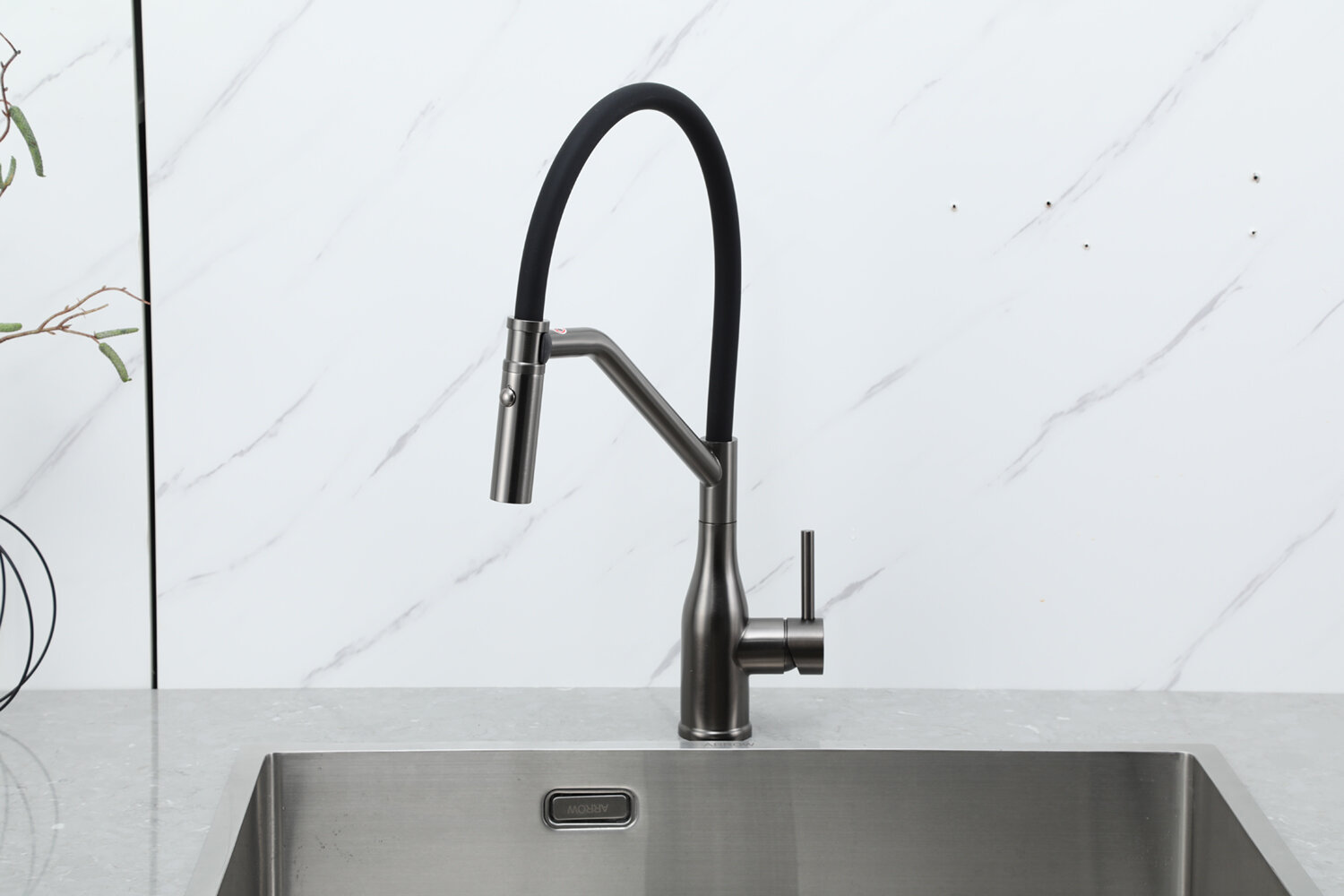 Смеситель для кухни гибкий излив с фильтром для воды Gappo G4398-81, черный/белый гранит