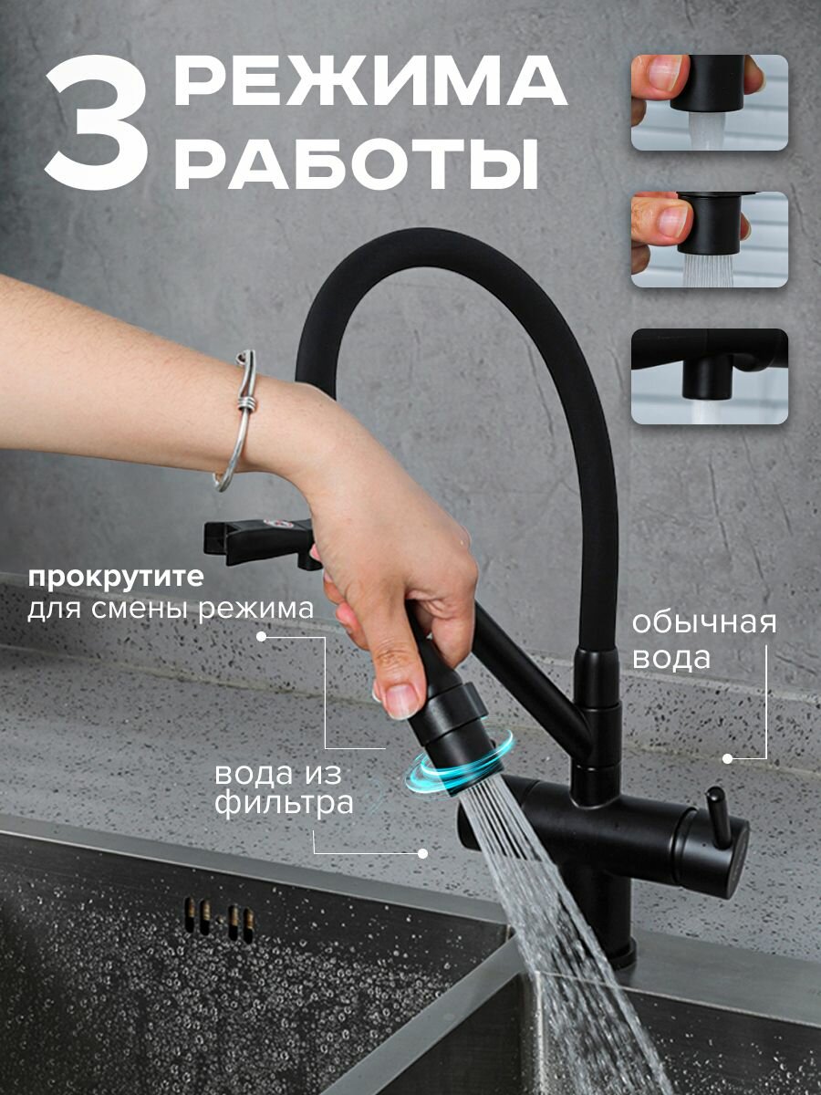 Смеситель для кухни Gappo G4398-66 с подключением фильтра питьевой воды, гибкий излив, черный