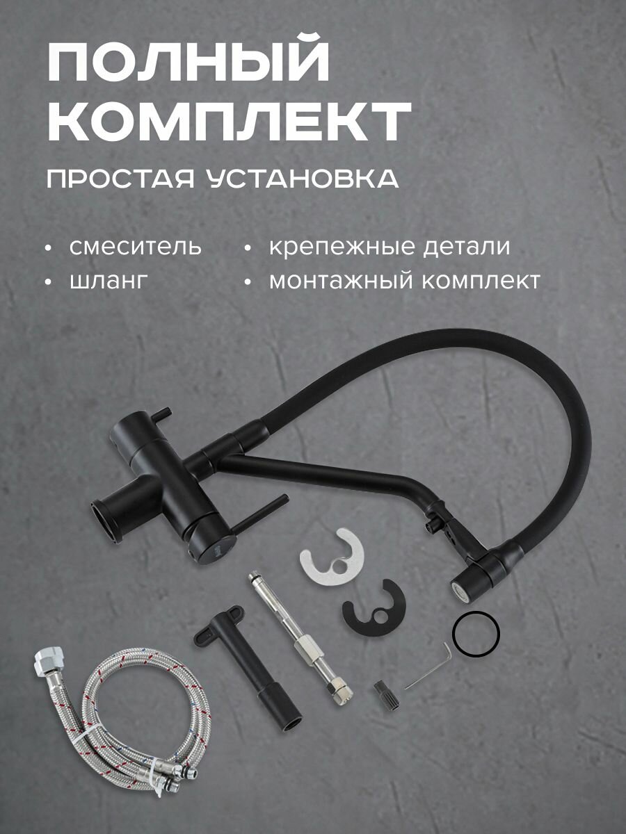Смеситель для кухонной мойки Gappo G98-85 G4398-85 с гибким изливом и подключением фильтра питьевой воды, сатин, черный