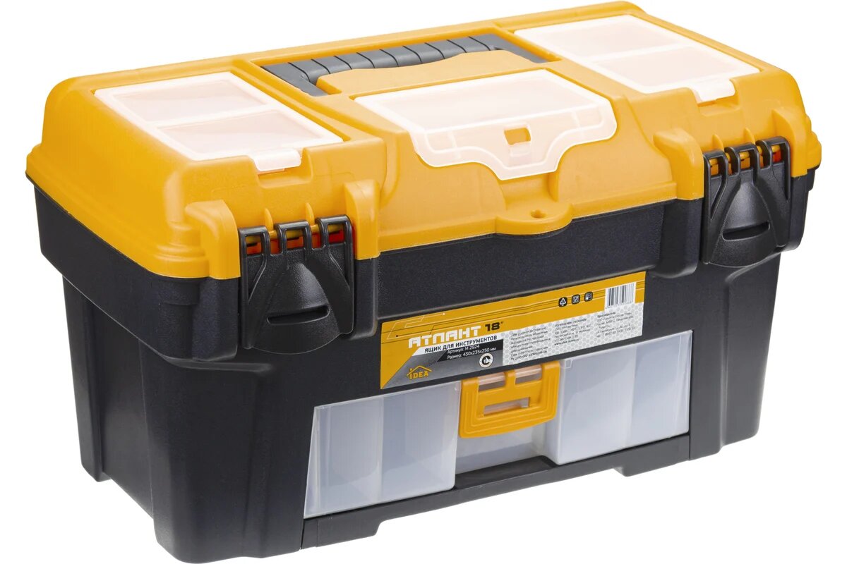 Купить IDEA Ящик для инструментов атлант 18' (с консолью и секциями) черный с желтым М 2924 черный с желтым