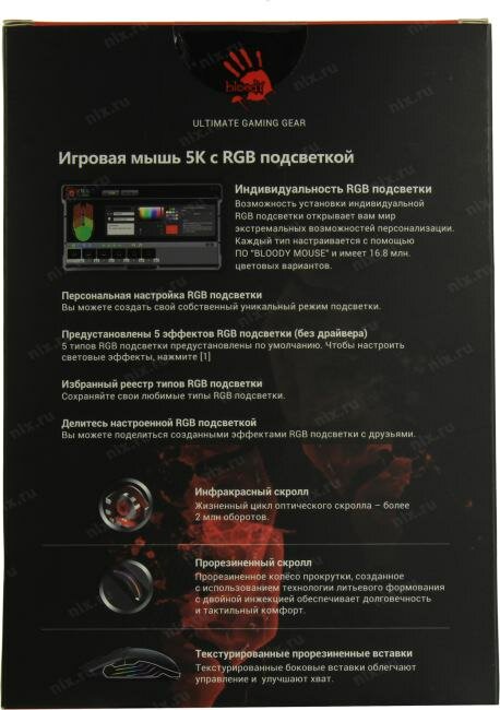| Отзыв: | Пользуюсь мышью 1,5 года, все супер, никаких технических проблем нет, ни разу не было даблклика и прочего. Очень нравится быстрый отклик и точное позиционирование. До неё у меня была Logitech g102 и Bloody мне нравится гораздо больше в этом плане и не только.