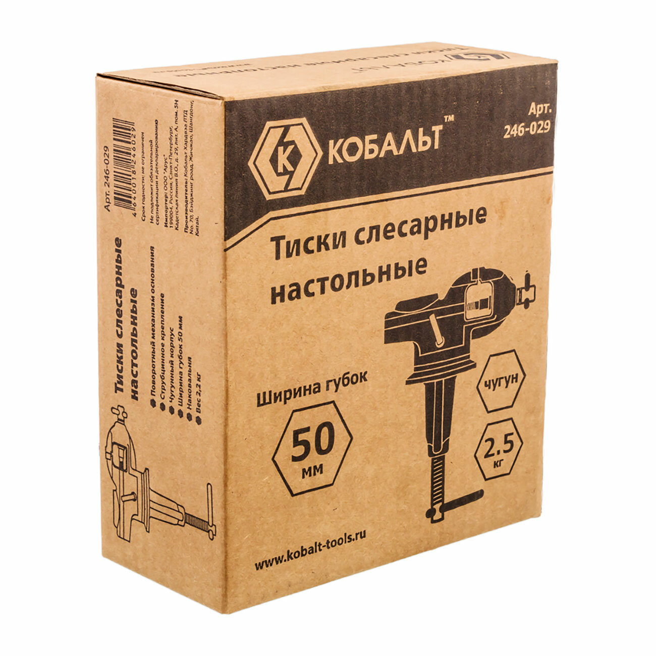 Тиски слесарные кобальт настольные, ширина губок 50 мм, 2.2 кг, наковальня, коробканаковальня, коробка (ширина губок 50 мм, 2.2 кг, наковальня, коробка)
