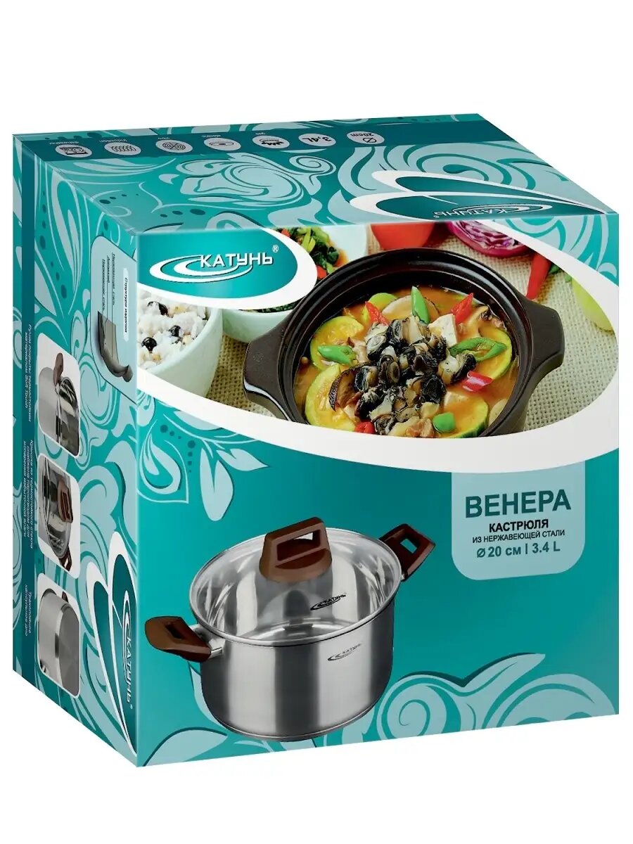 Кастрюля 3,4 л катунь, венера, KT18-D-20, нерж.сталь, зеркальная полировка