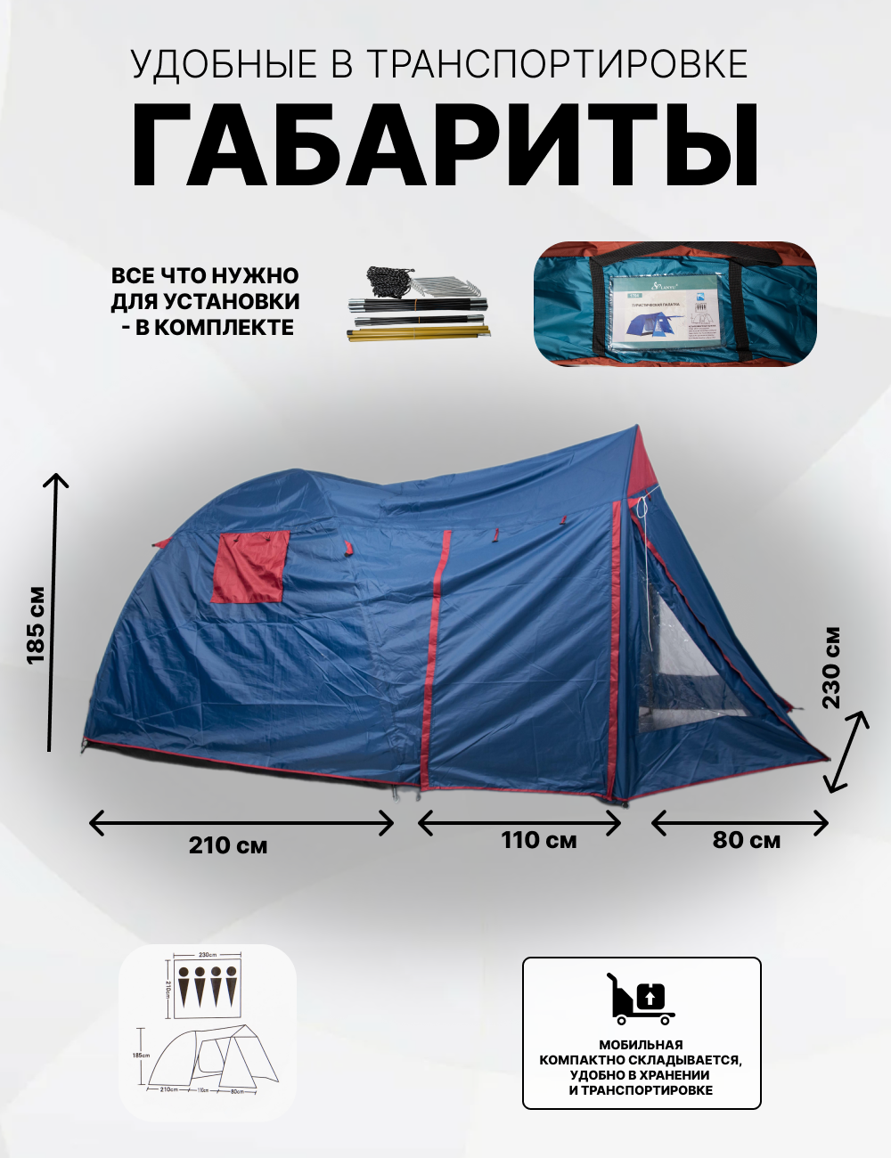 | Ширина внешней палатки | 230 см |