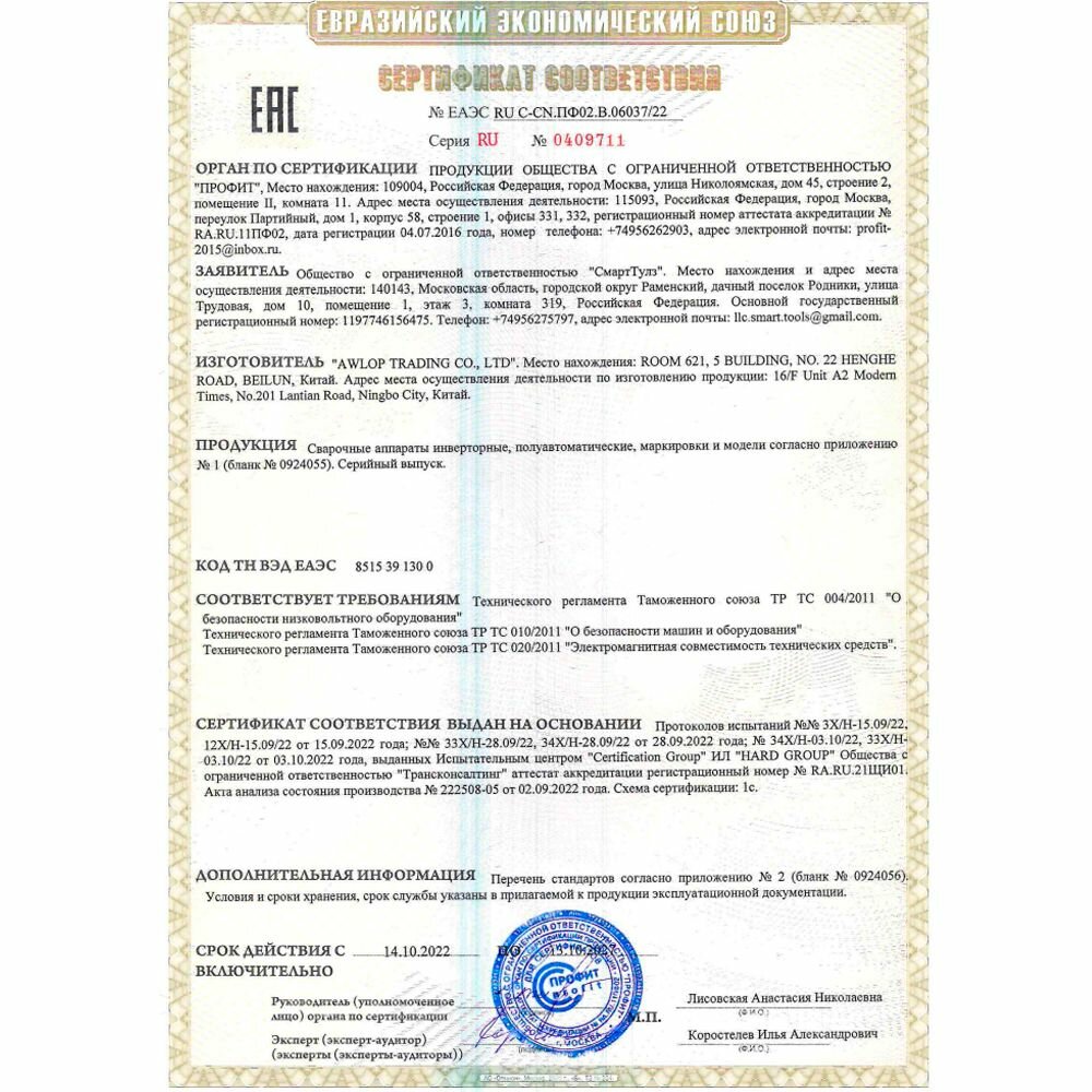 | Тип аппарата | сварочный инвертор |