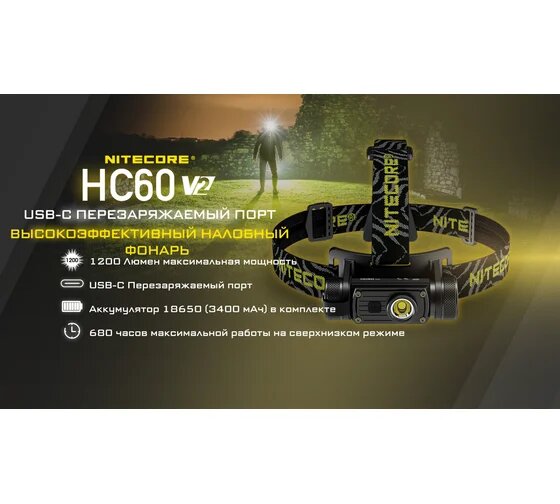 Купить Nitecore Налобный фонарь HC60W V2 OSRAM P9 Тёплый свет 21772