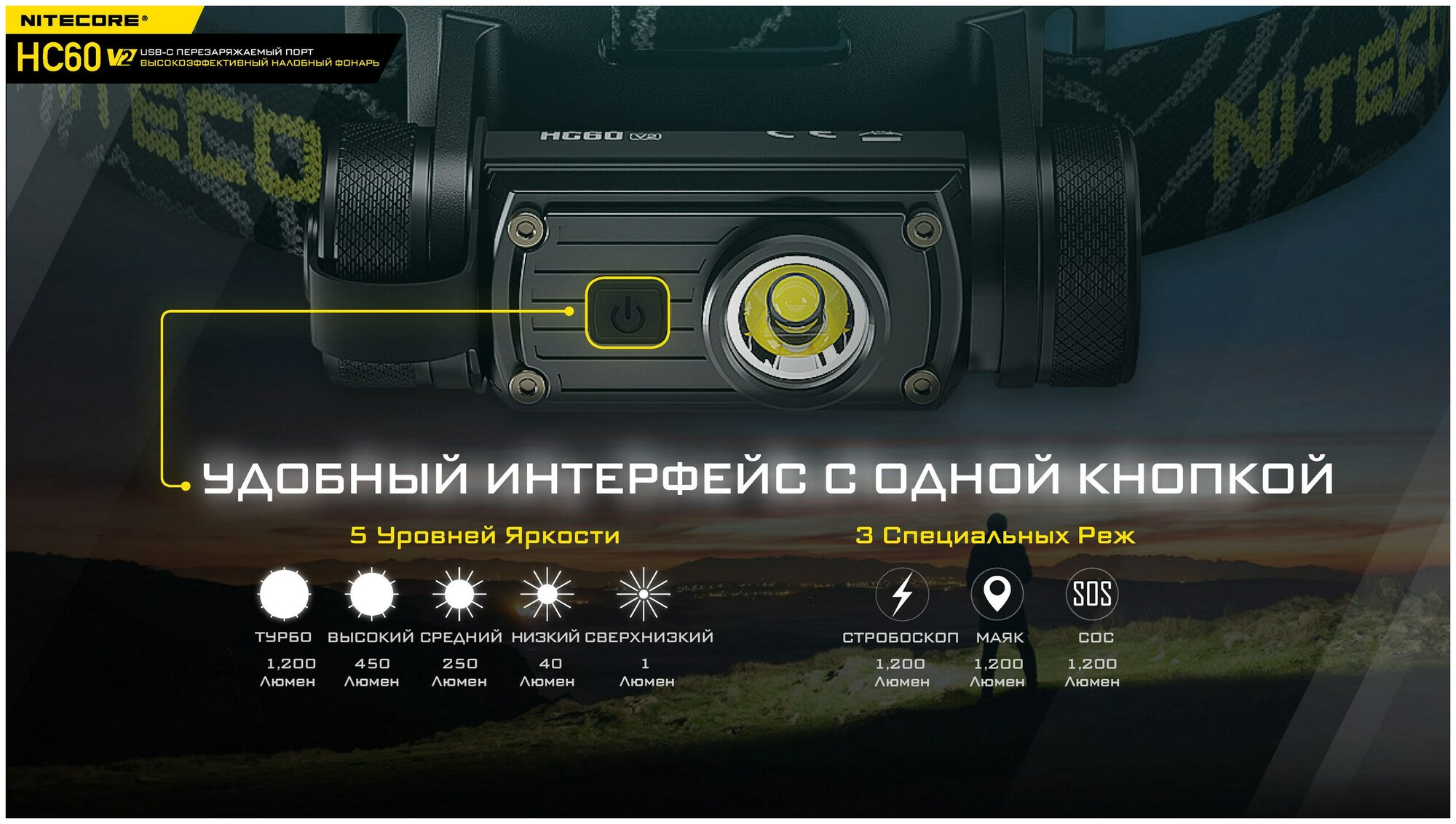 Nitecore Налобный фонарь HC60W V2 OSRAM P9 Тёплый свет 21772 интересное: