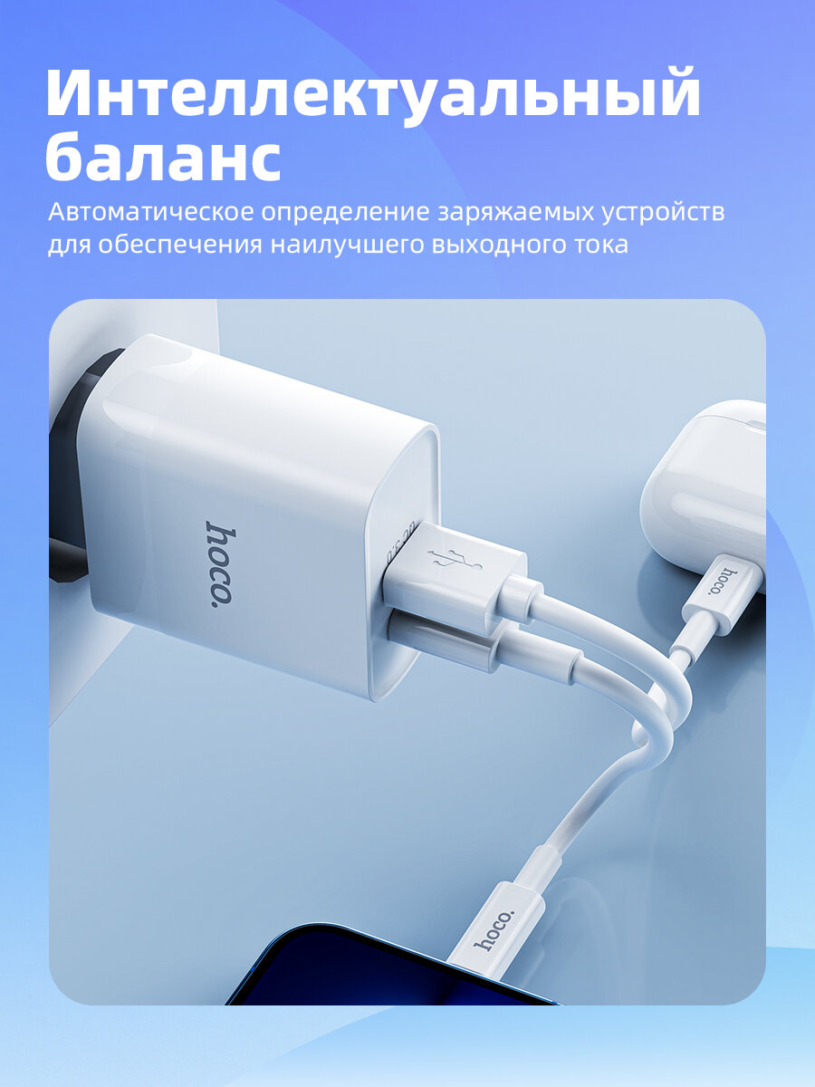 Купить Быстрая зарядка для телефона с разъемами Type-C и USB-A и кабелем type-c to ip PD20W /Hoco C80A Plus PD20W white (EU)