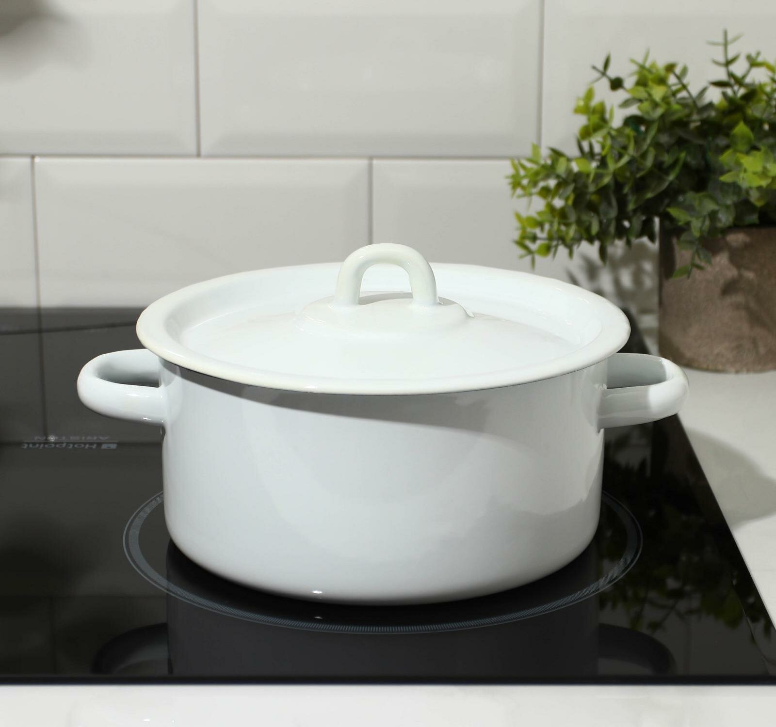 Сибирские товары Кастрюля цилиндрическая, 2 л, эмалированная крышка, индукция, цвет белый