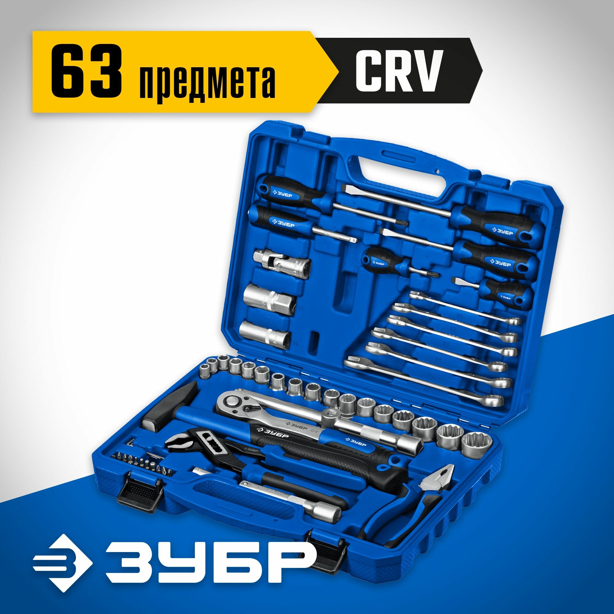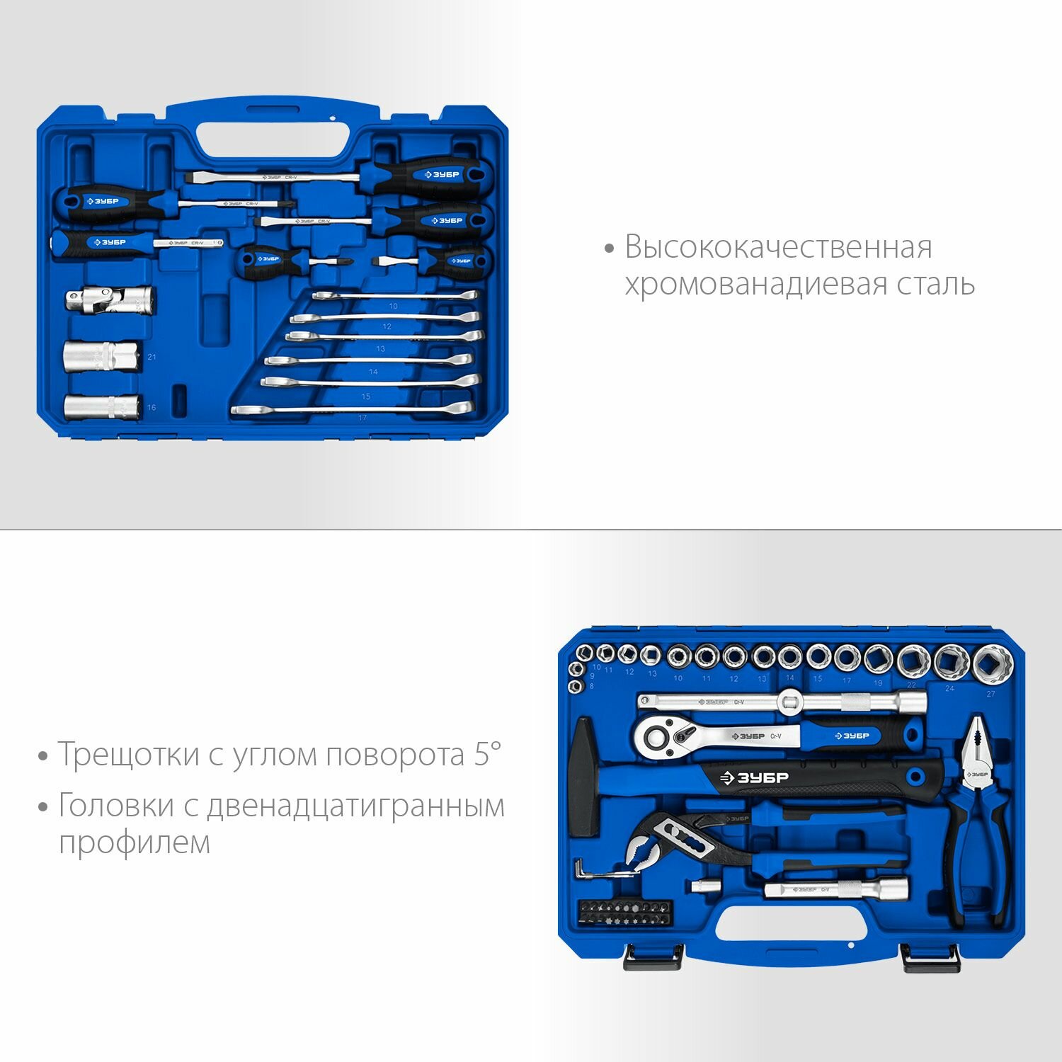 ЗУБР Универсал-63, 63 предм. (1/2"+ 1/4"), Универсальный набор инструмента, Профессионал (27670-H58)
