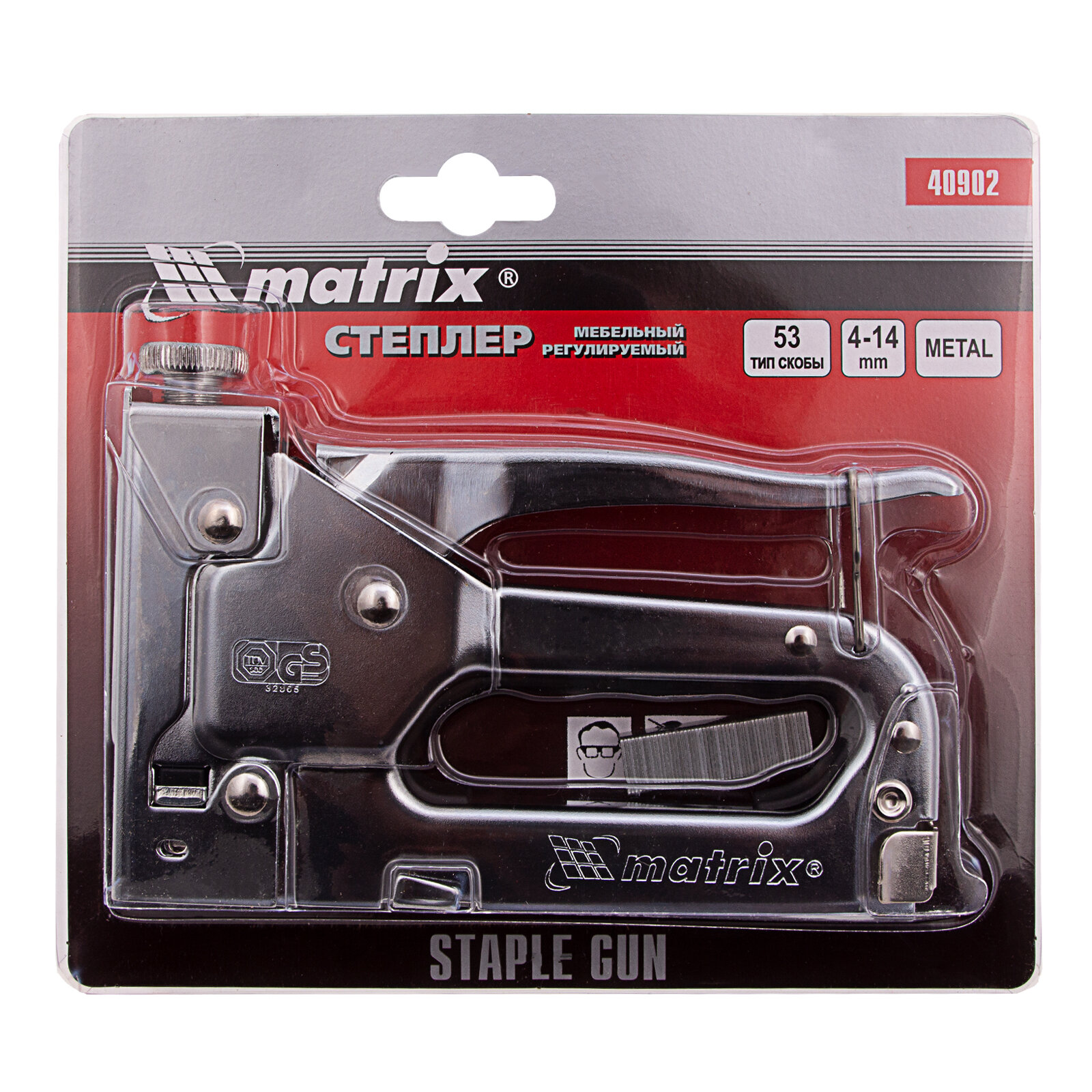 Степлер мебельный MATRIX "MASTER", стальной, регулируемый, тип скобы: 53, 4-14 мм, 40902, 1шт в компл.