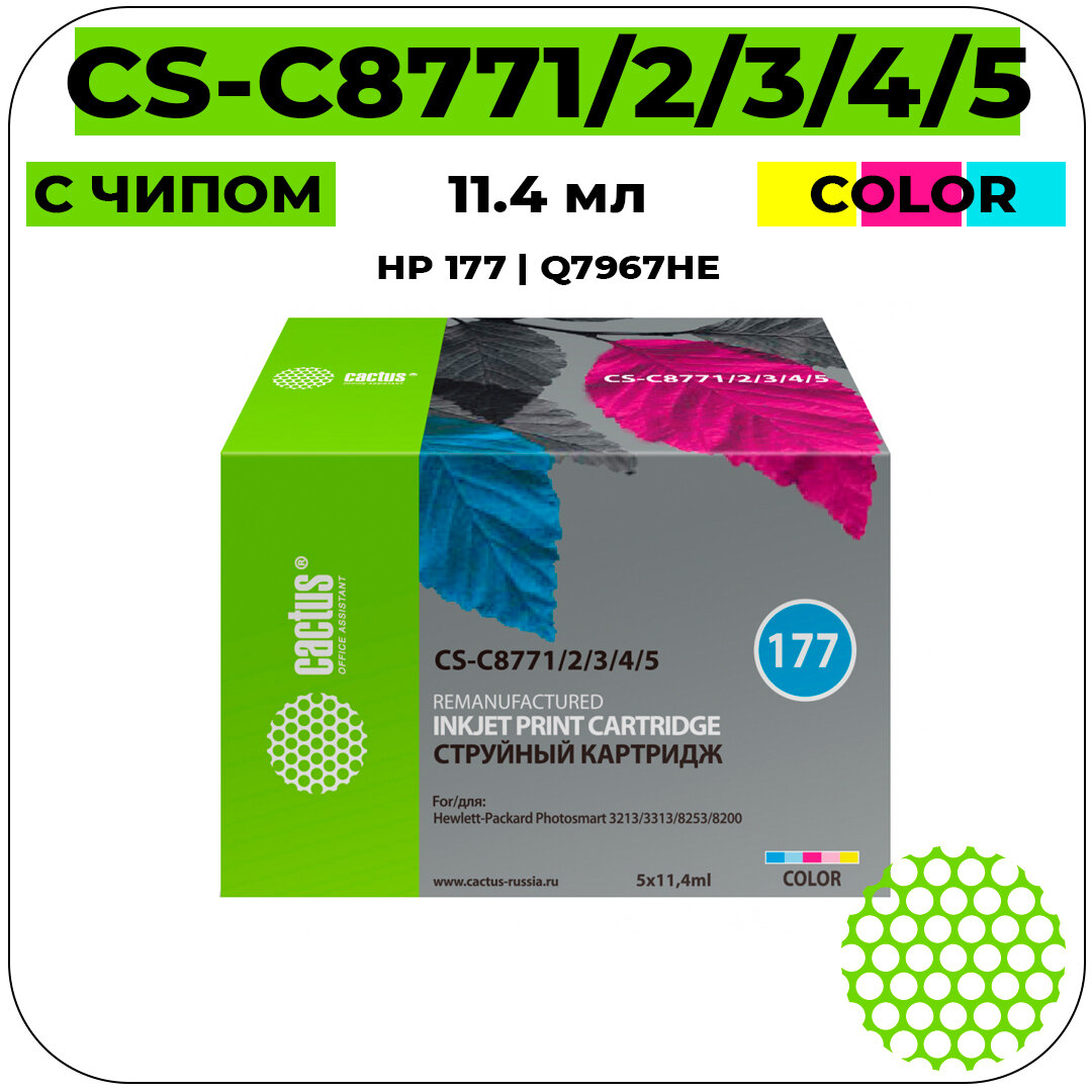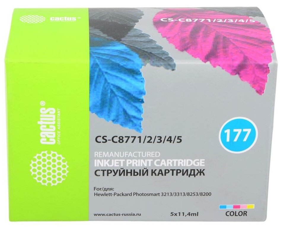 Купить Картридж струйный Cactus CS-C8771/2/3/4/5 многоцветный для №177 HP PhotoSmart 3213/3313/8253 (11,4ml