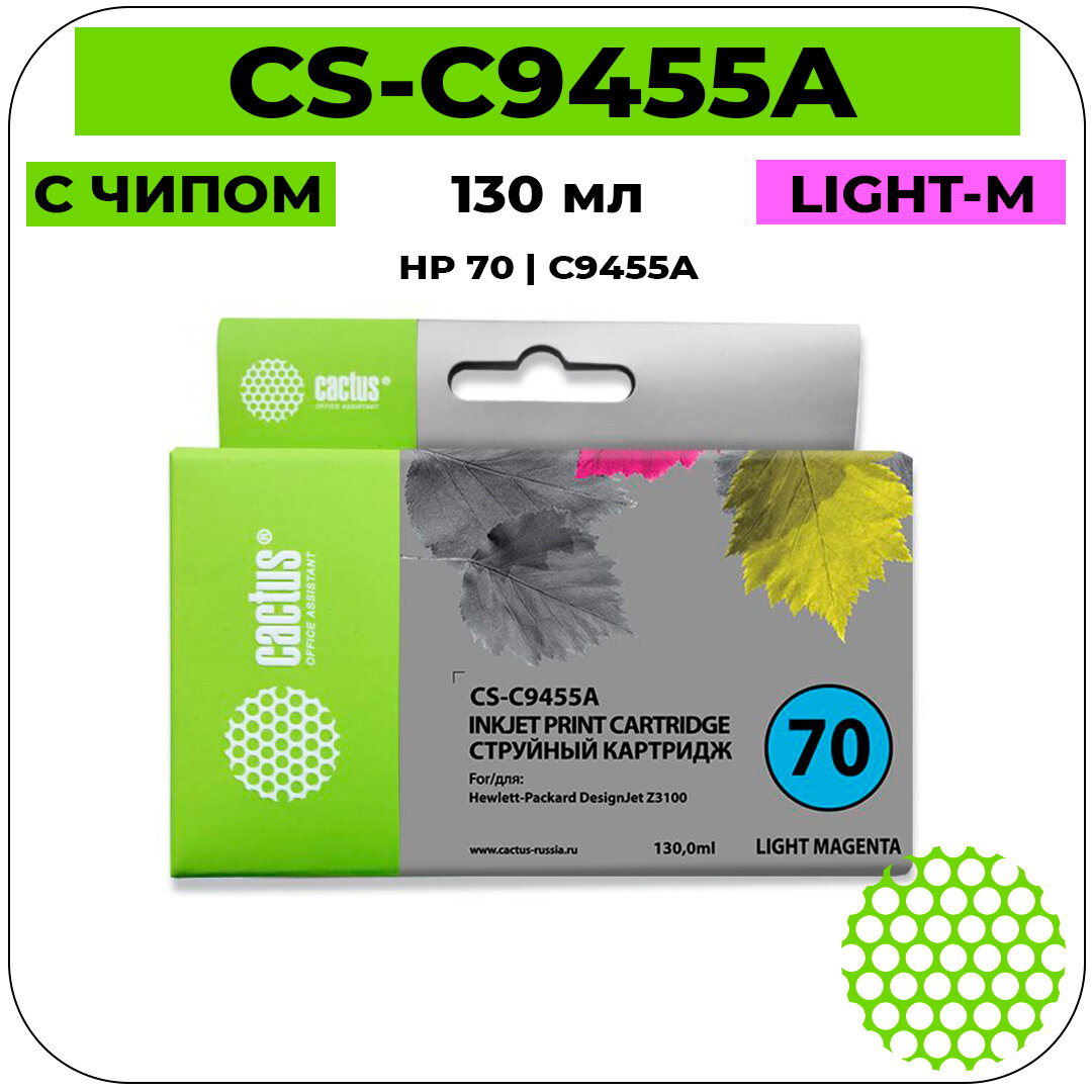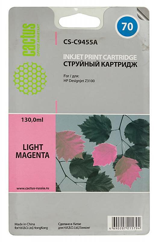 Картридж струйный Cactus Cs-c9455a 70 светло-пурпурный для HP DJ Z3100 (130мл) Cs-c9455a .