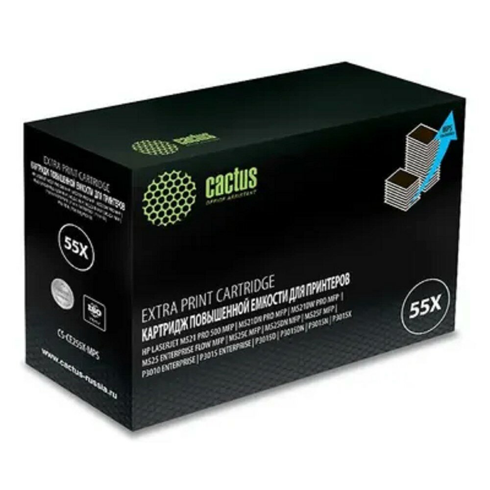 Картридж Картридж лазерный CACTUS (CS-CE255X) для HP LaserJet Enterprise P3015d/P3015dn/P3015x, ресурс 12500 страниц, CS-CE255XS