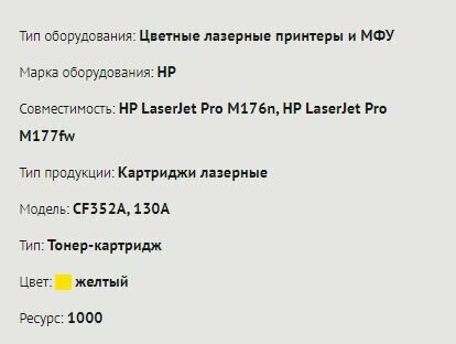 Купить Картридж Hi-Black для HP CF352A LJ Pro M176N/M177FW MFP желтый 1000стр