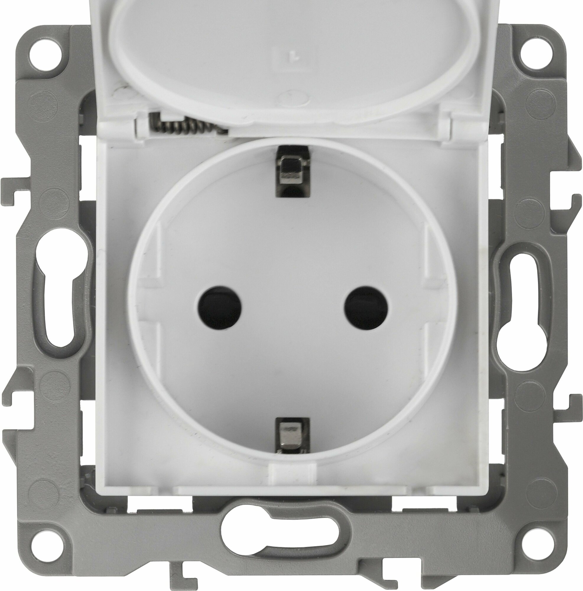 Розетка ЭРА 12, белая, с заземлением, с крышкой, 16A