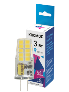Лампа светодиодная КОСМОС 4500K 12V, G4, G4, 3 Вт, 4500 К
