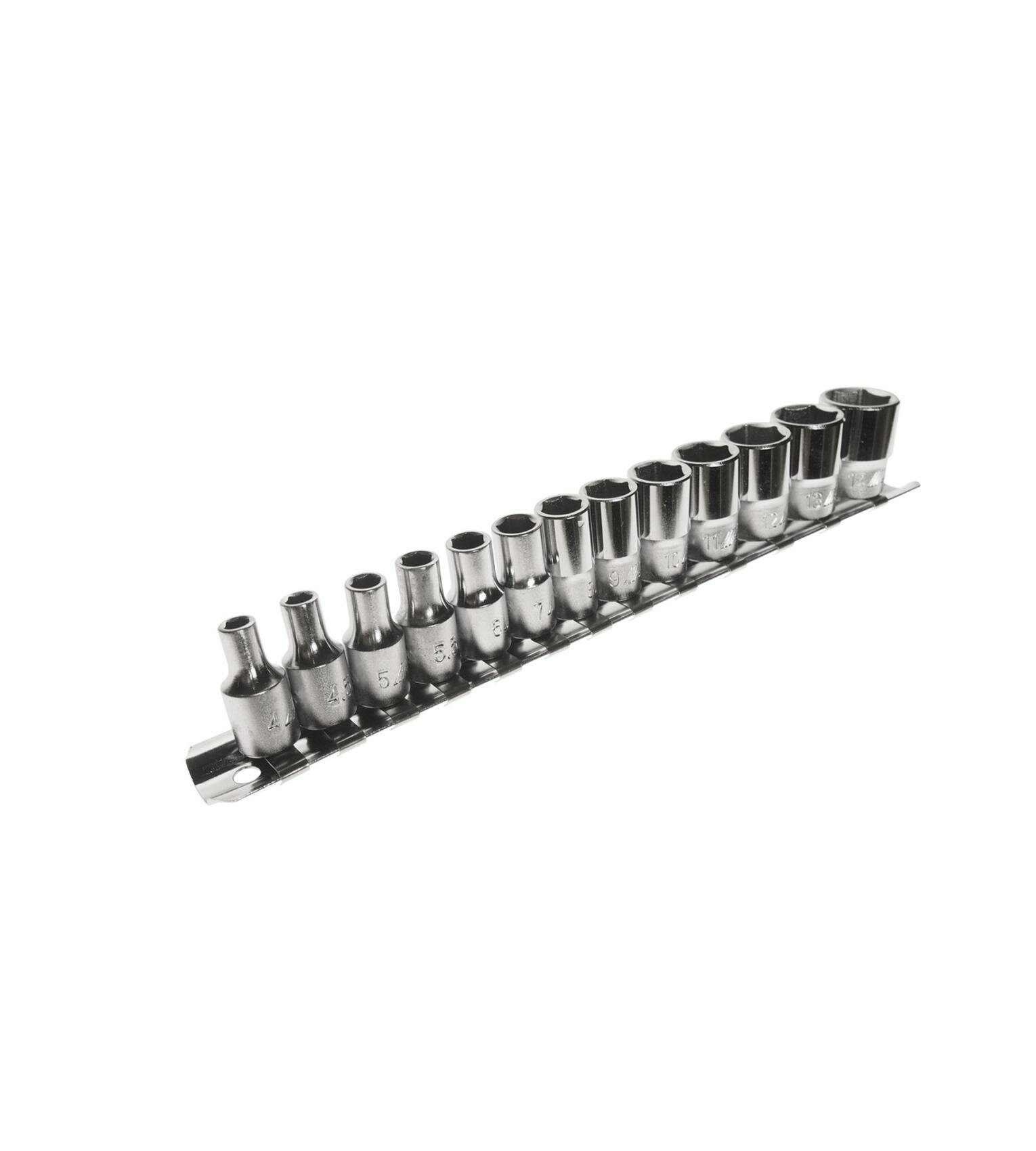 Набор торцевых головок Jtc H213M 1/4" 6-гранных, 4-14мм, длина 25мм, 13 предметов
