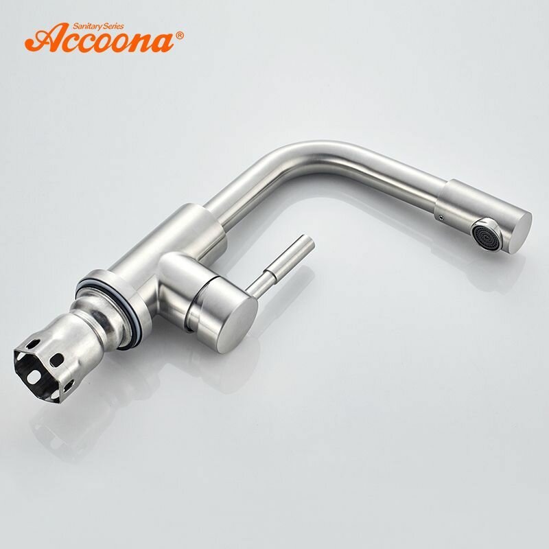 Accoona Cмеситель для раковины Accoona A9690-2, однорычажный, с гайкой, нержавеющая сталь