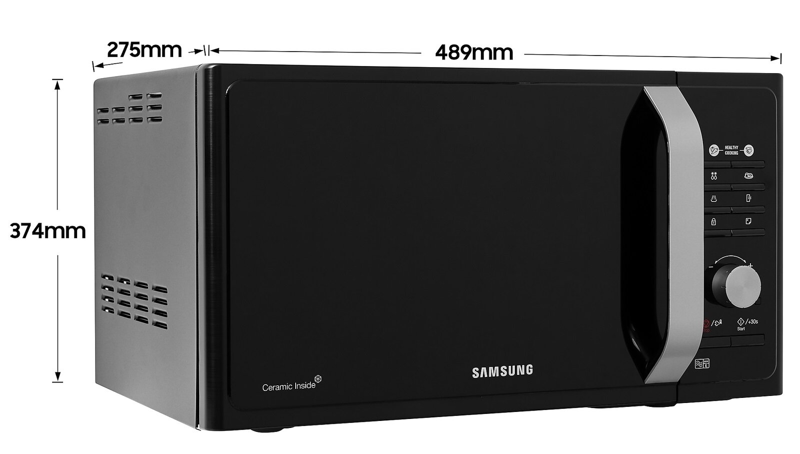 Купить Микроволновая печь Samsung MS23F301TAK, черная, 800Вт, 23л, 6 режимов, блокировка от детей