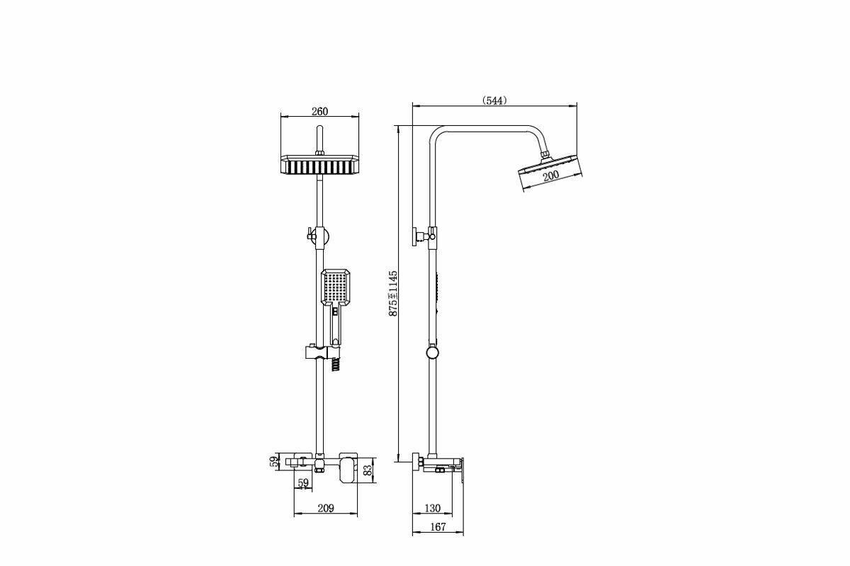 A52424-7 Душевая стойка, SUS304, чёрная (шланг 150 мм с лейкой, душевая стойка с лейкой "тропический душ", керамический дивертер, крепление, эксцентрики, отражатели)