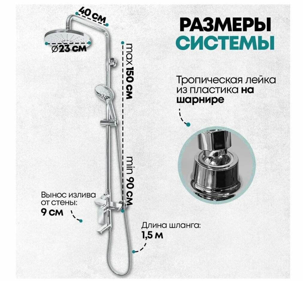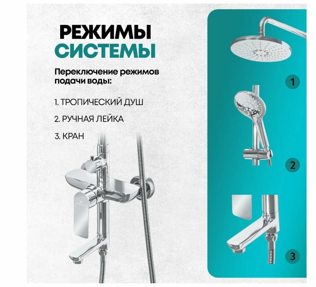 | Режимы | массажная струя / мягкая струя / смешанная струя / тропический дождь |