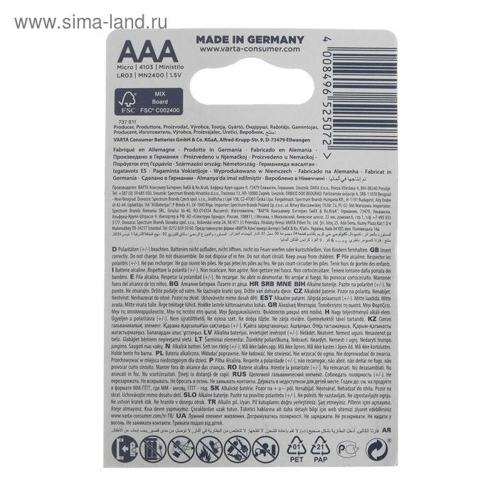 Батарейка алкалиновая Varta LongLife, AAA, LR03-4BL, 1.5В, блистер, 4 шт.