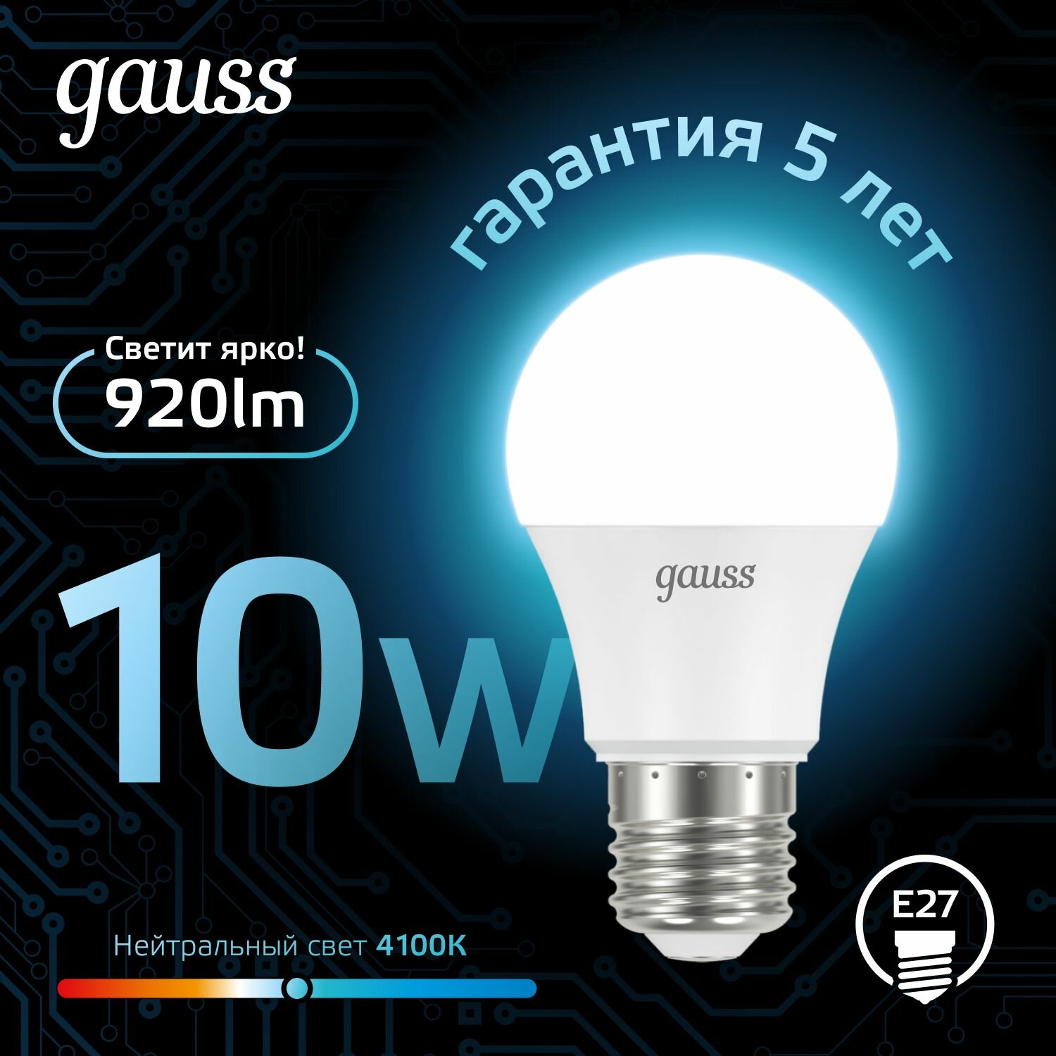 Набор из 10 штук Лампа Gauss A60 10W 920lm 4100K E27 LED 1/10/50 интересное: