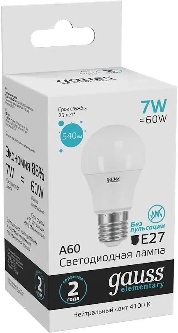 Gauss Elementary A60 7W 540lm 4100K E27 (10шт.)