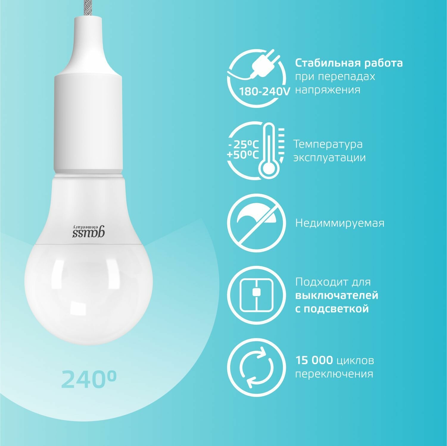 Купить Лампочка светодиодная Е27 Груша 7W нейтральный белый свет 4100К упаковка 10 шт. Gauss Elementary