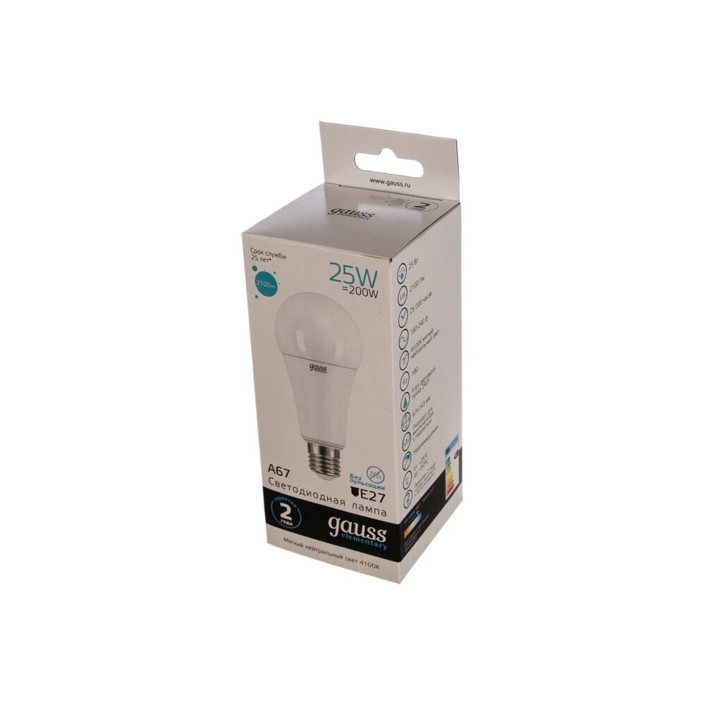 Лампа светодиодная Gauss Elementary A67 25Вт цок.:E27 груша 220B 4100K св.свеч.бел.нейт. А67 (упак.:1шт) (73225)