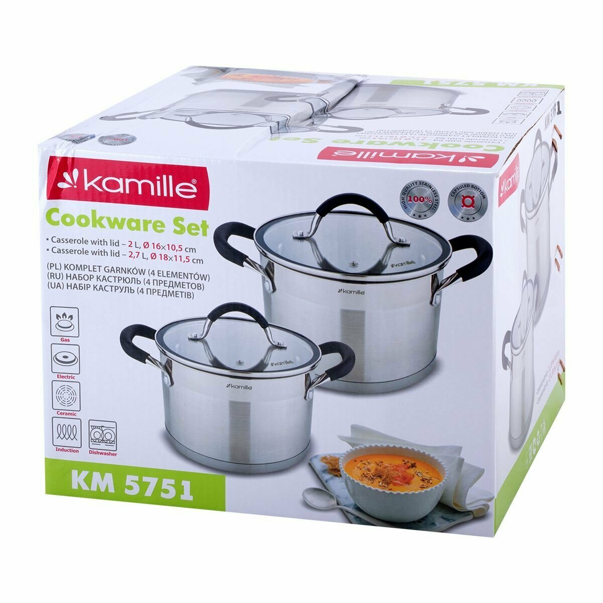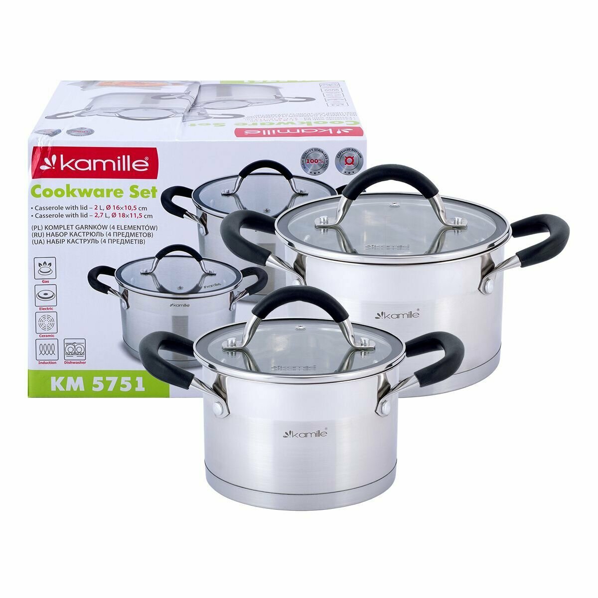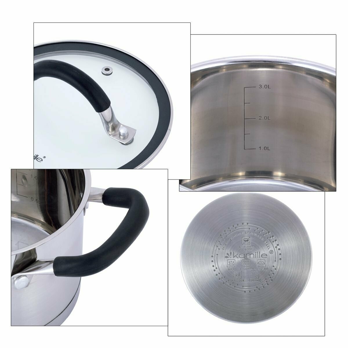 Купить Набор кастрюль из нержавеющей стали Kamille с силиконовыми вставками на ручках