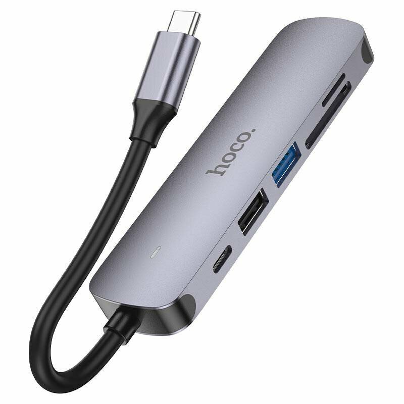 Хаб 6 в 1 Hoco HB28 USB 2.0, 1 USB 3.0, Type-C, Card Reader SD, Micro SD, HDMI
