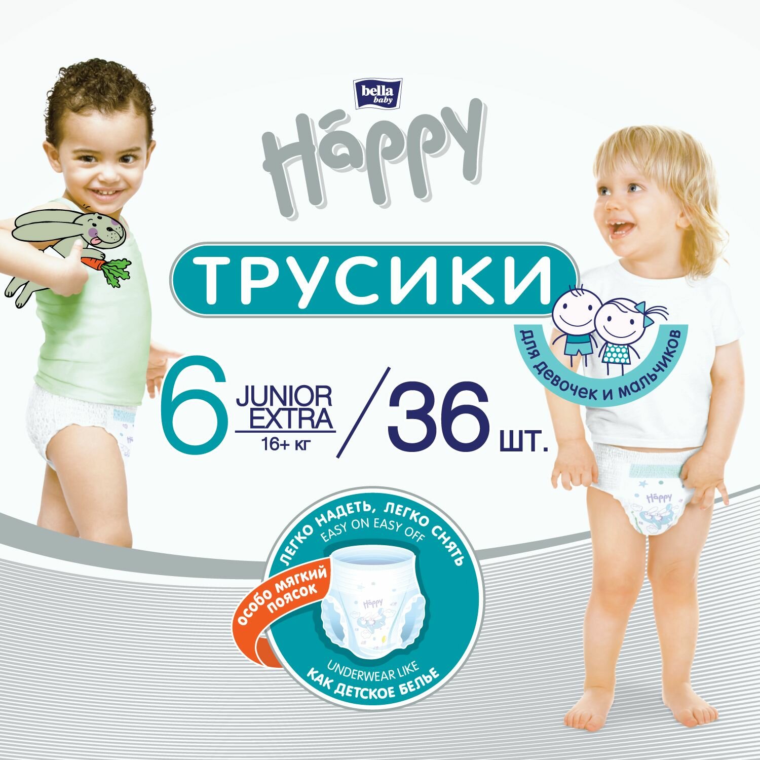 Купить Подгузники - трусики для детей bella baby Happy Junior Extra дышащие, размер 6 (16+ кг), 36 шт.