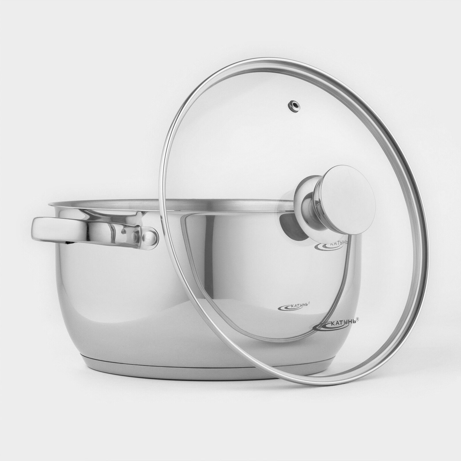 Катунь Кастрюля «Антея», 3 л, d=20 см, капсульное дно, стеклянная крышка, индукция, цвет хромированный