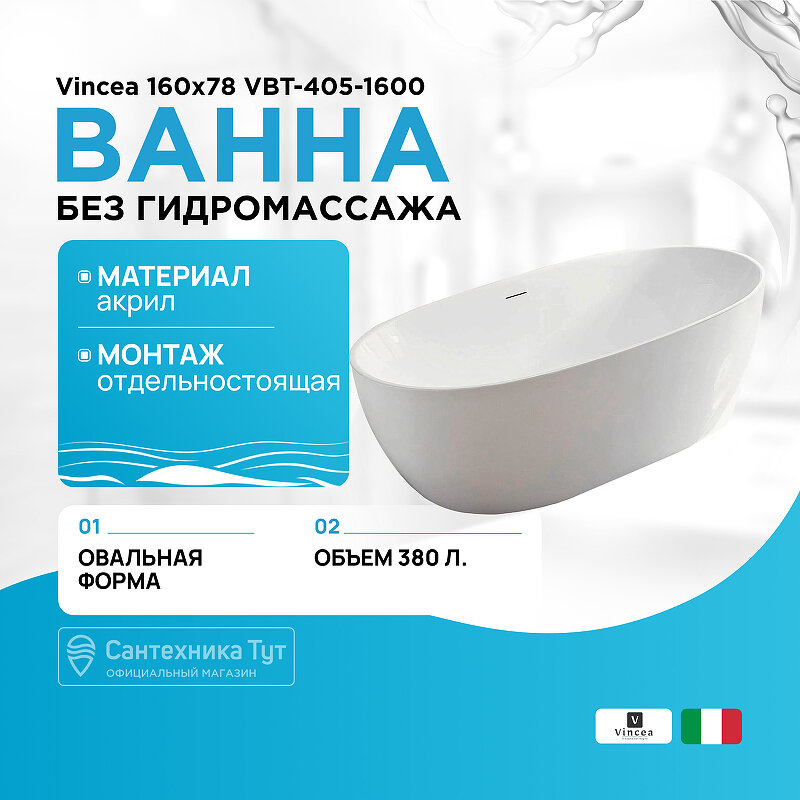 Купить Акриловая ванна 160x78 см Vincea VBT-405-1600