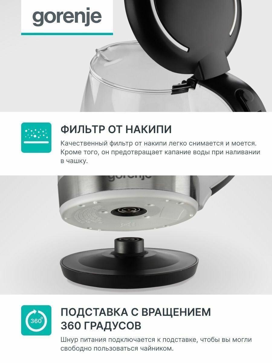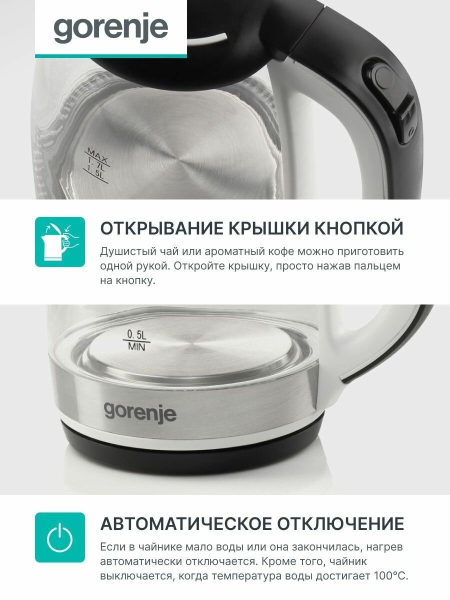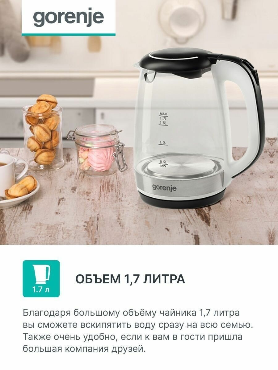 Чайник Gorenje K17GLBW 1,7 литра, 2200Вт интересное: